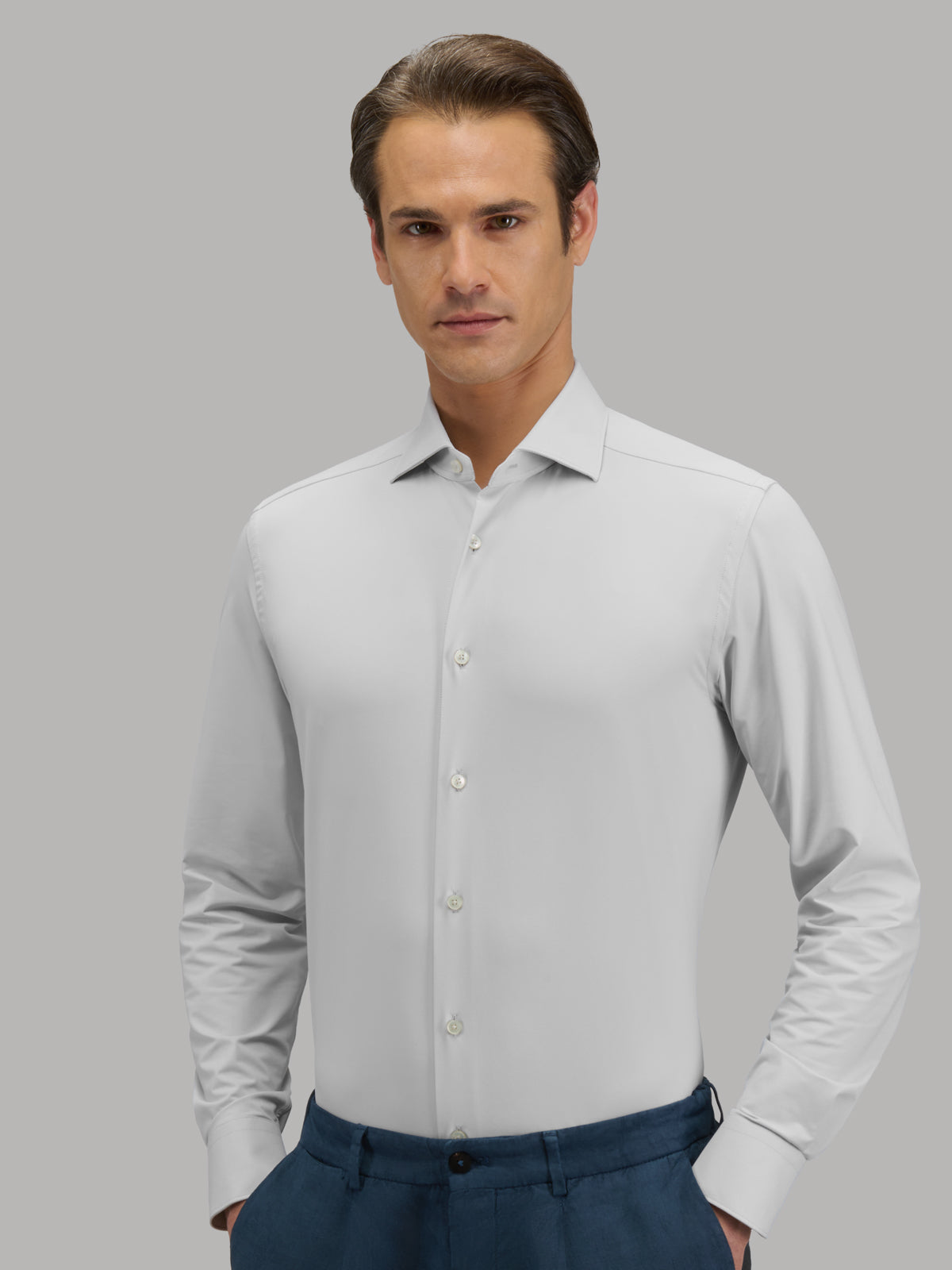 Hemd Kragen Haifisch Klein Uni Webstoff Hellgrau