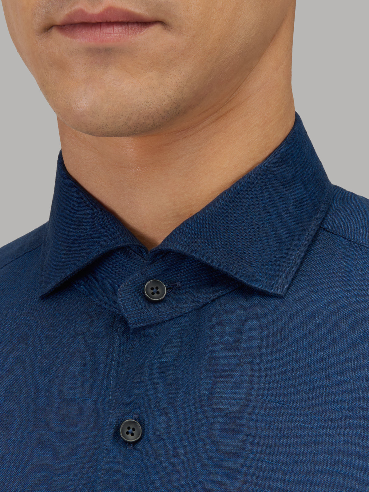 Shirt Collar Cutaway Solid Colour Linen Navy Blue