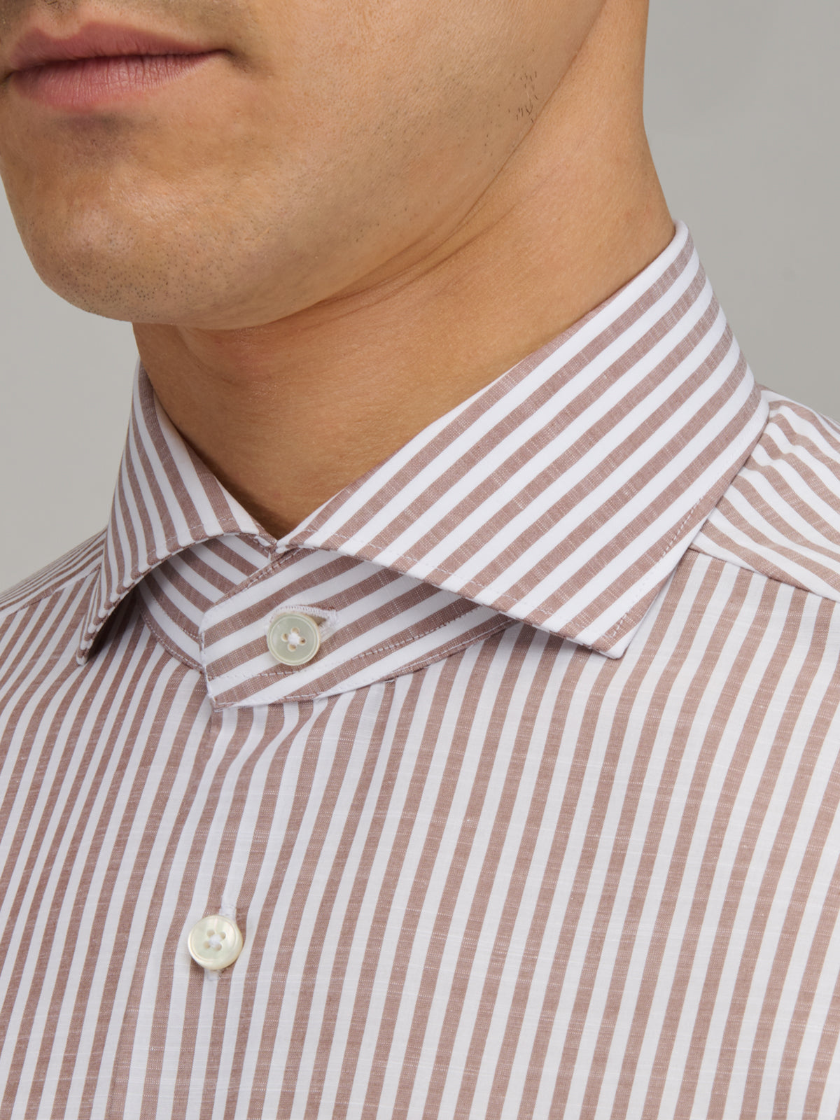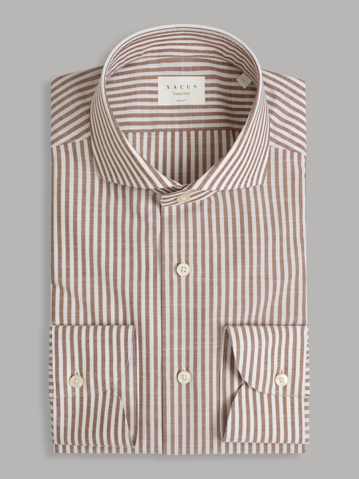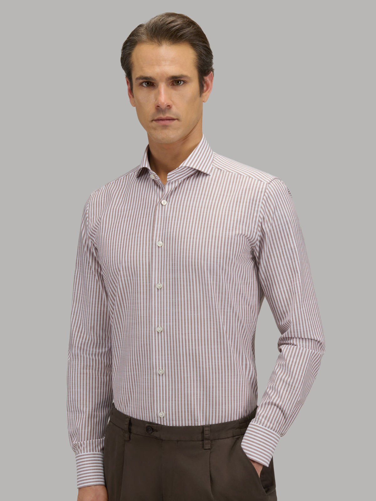 The fabrics of the Travel Shirt line ensure a flawless, crease-free look throughout the day, embodying elegance in motion. Crafted in slub poplin, it stands out for its slightly irregular texture that adds depth and refined visual richness. Lightweight and breathable, it combines comfort and performance with sophisticated appeal, accompanying the journey with natural ease. A garment that expresses textile innovation and sartorial tradition, for those who value true attention to detail.