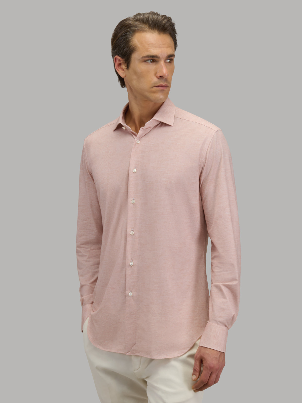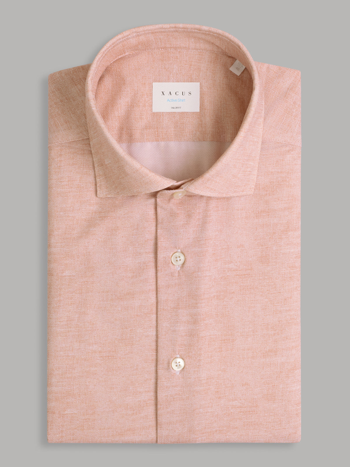 Active Shirt is designed for a dynamic lifestyle, always in motion. Crafted using exclusive Japanese technology, it combines a technical yarn of polyamide and elastane that ensures maximum performance. The fabric surface is enhanced by a linen-effect print in micro-pattern, adding visual depth and a refined, natural appearance. Lightweight, breathable and naturally stretch, it guarantees comfort and freedom of movement throughout the day.