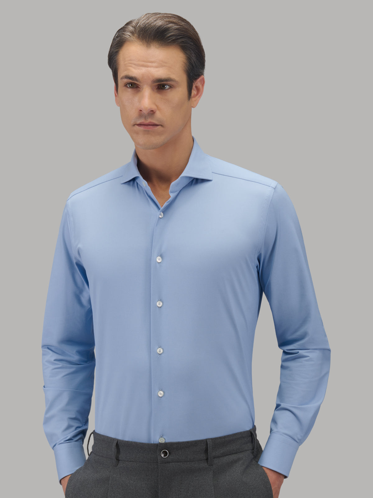 From Japanese technology a high-tech shirt for people living an active lifestyle, always on the move. The Active-shirt is very comfortable for any activity, made of highly breathable, 3D stretch polyamide and elastane yarn that dries very quickly. It has the elegance of a formal shirt and the extreme perfomance of being always perfect.