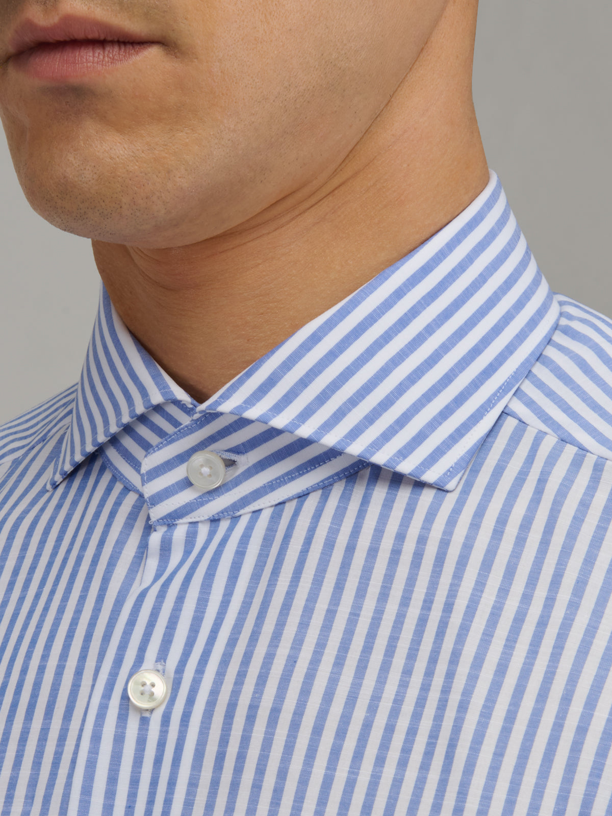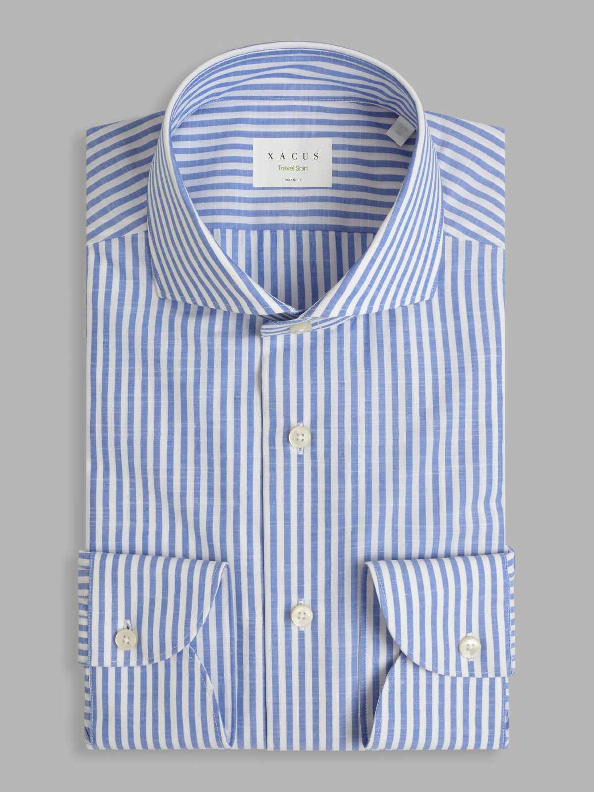 The fabrics of the Travel Shirt line ensure a flawless, crease-free look throughout the day, embodying elegance in motion. Crafted in slub poplin, it stands out for its slightly irregular texture that adds depth and refined visual richness. Lightweight and breathable, it combines comfort and performance with sophisticated appeal, accompanying the journey with natural ease. A garment that expresses textile innovation and sartorial tradition, for those who value true attention to detail.