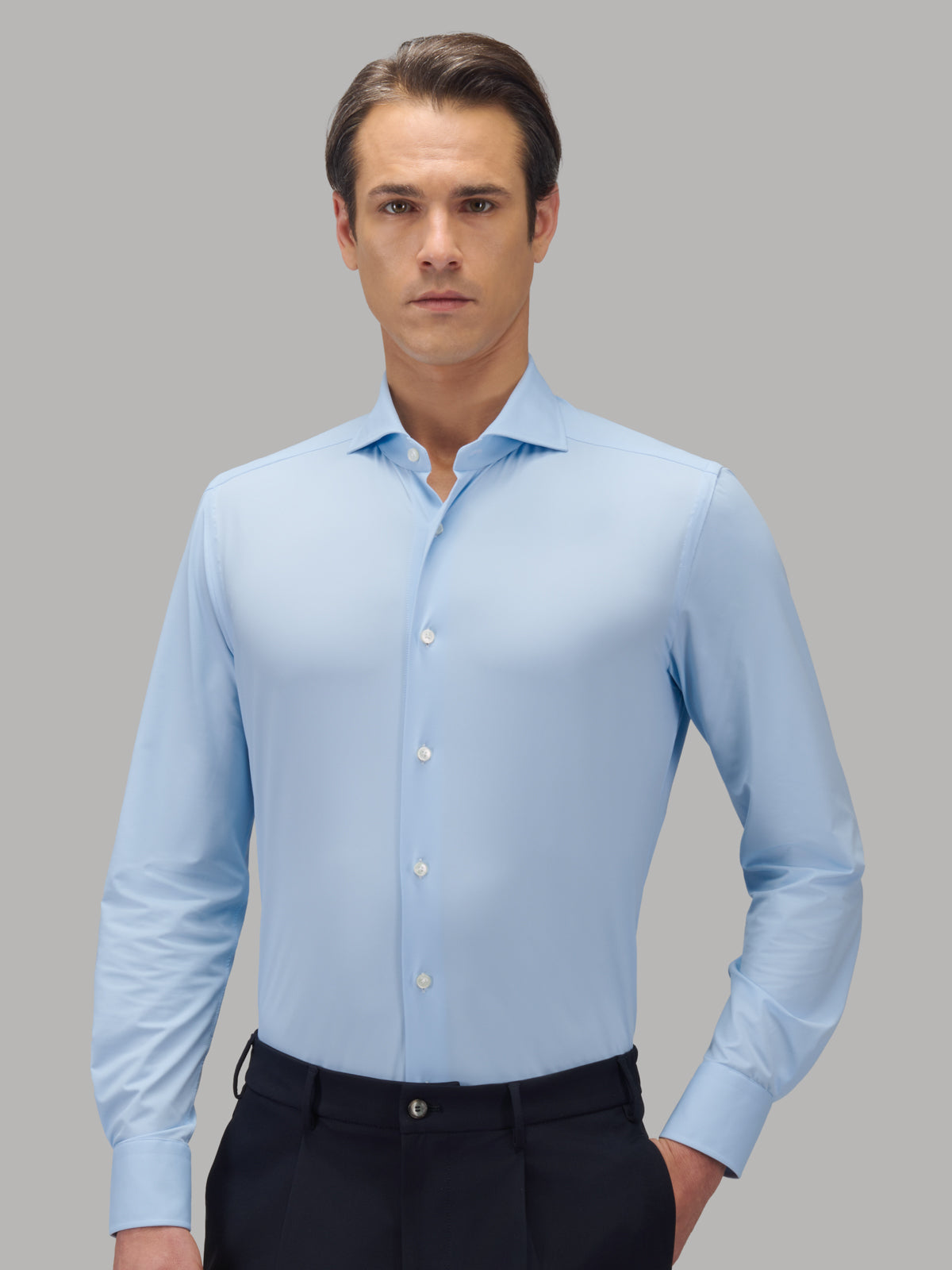 From Japanese technology a high-tech shirt for people living an active lifestyle, always on the move. The Active-shirt is very comfortable for any activity, made of highly breathable, 3D stretch polyamide and elastane yarn that dries very quickly. It has the elegance of a formal shirt and the extreme perfomance of being always perfect.