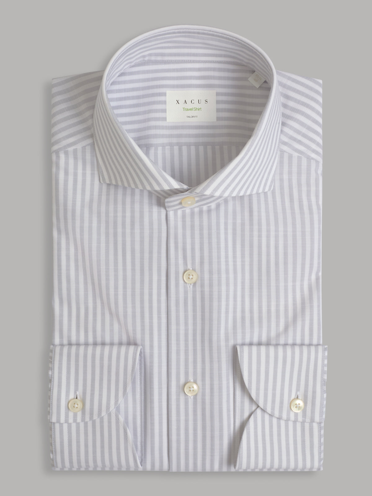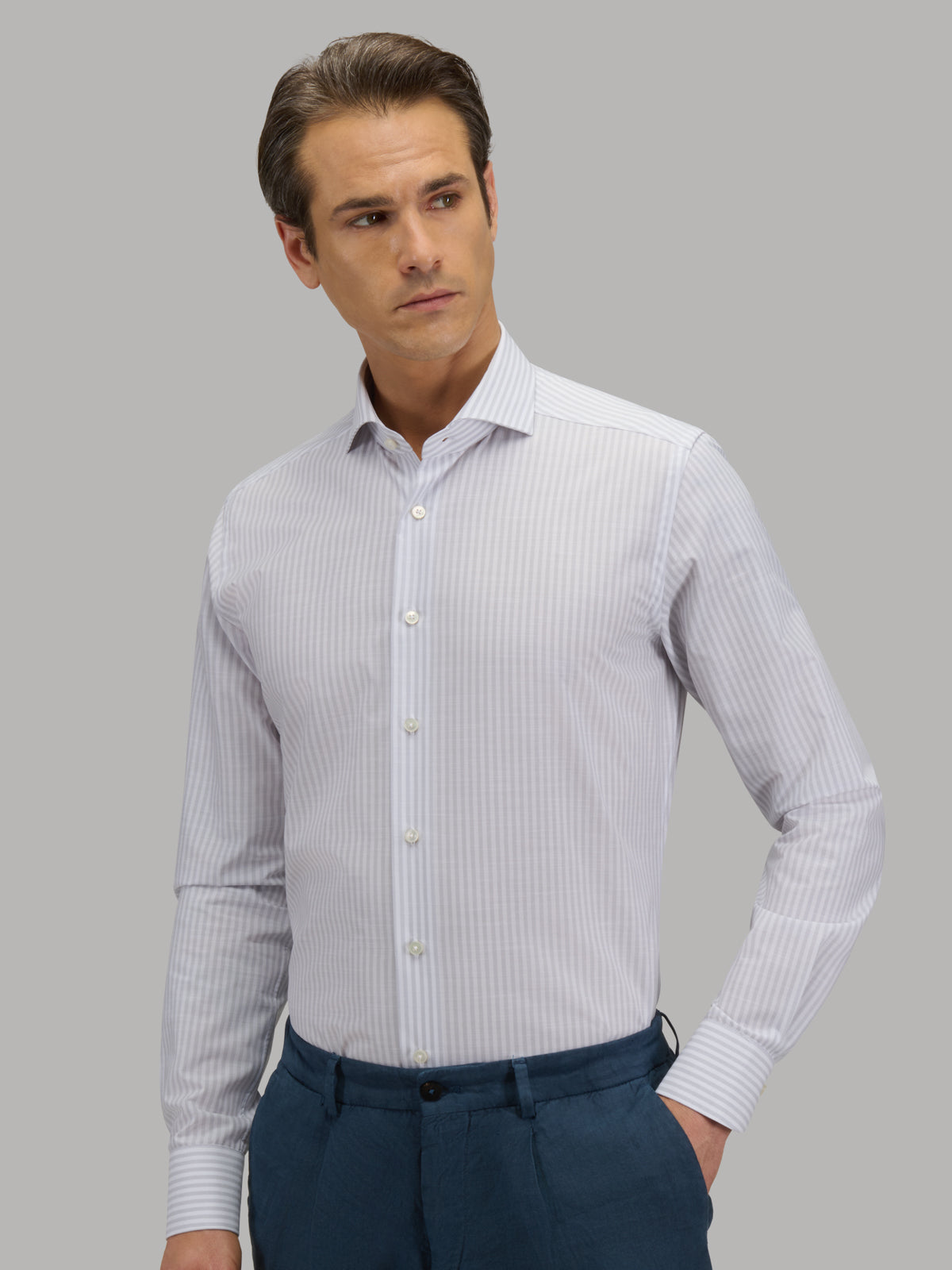 Shirt Collar Cutaway Stripe Poplin Pale Grey
