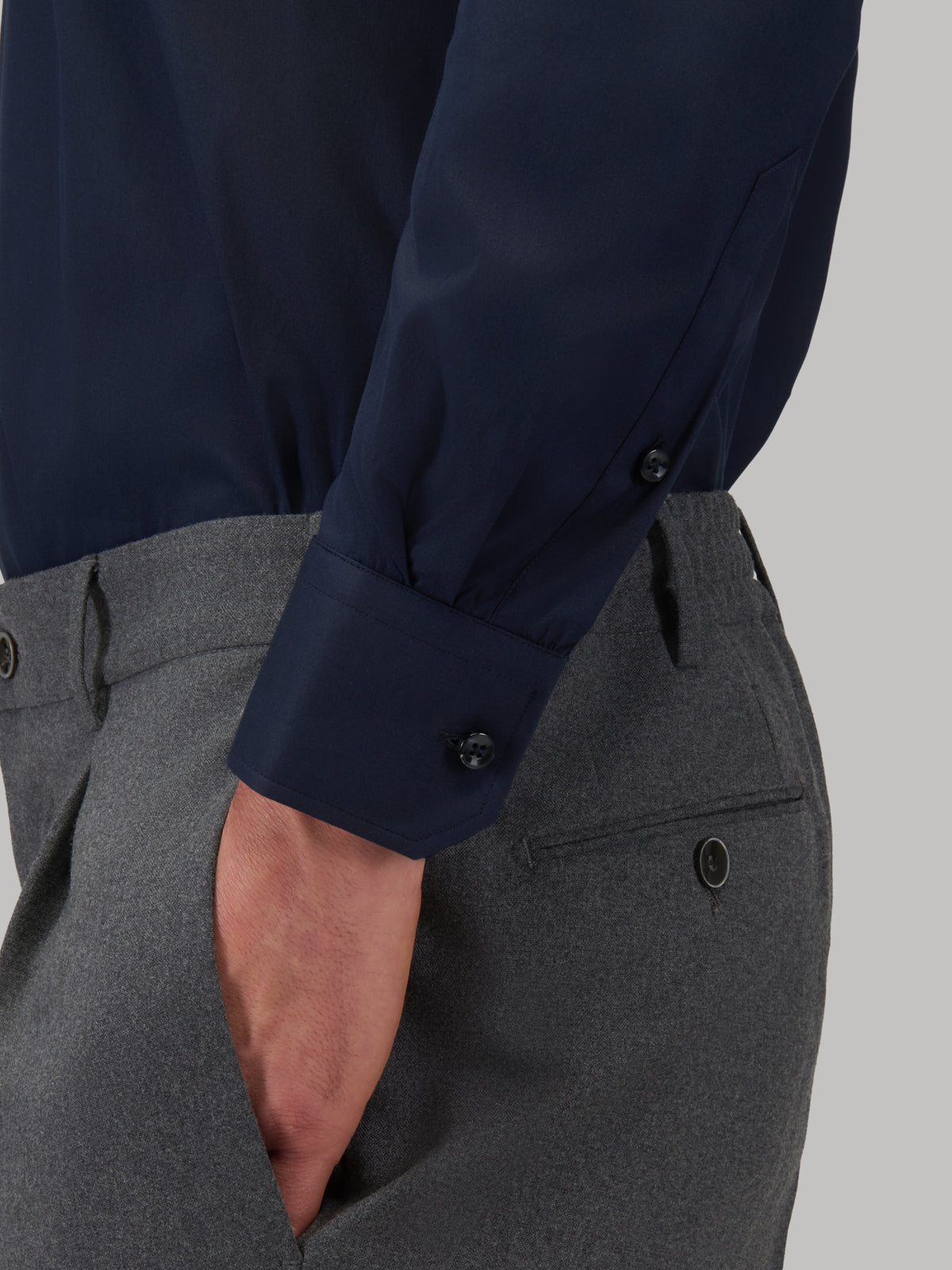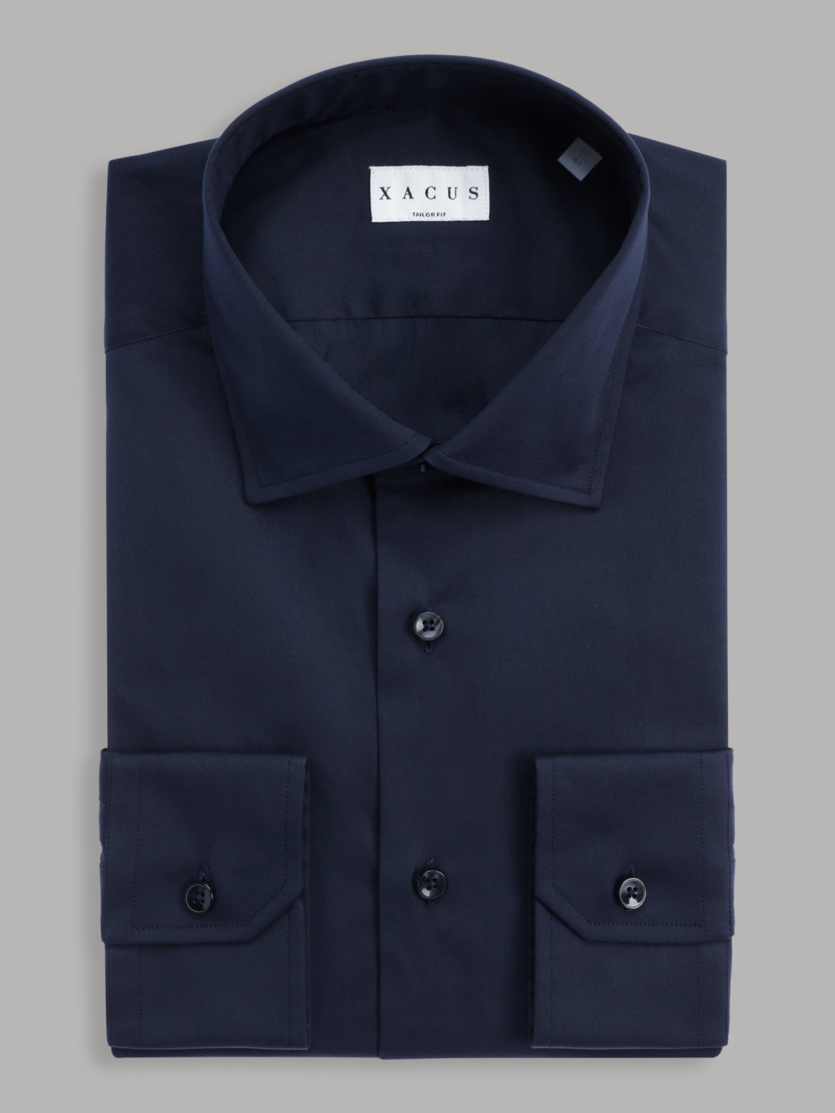 Shirt Collar Spread Solid Colour Poplin Navy Blue