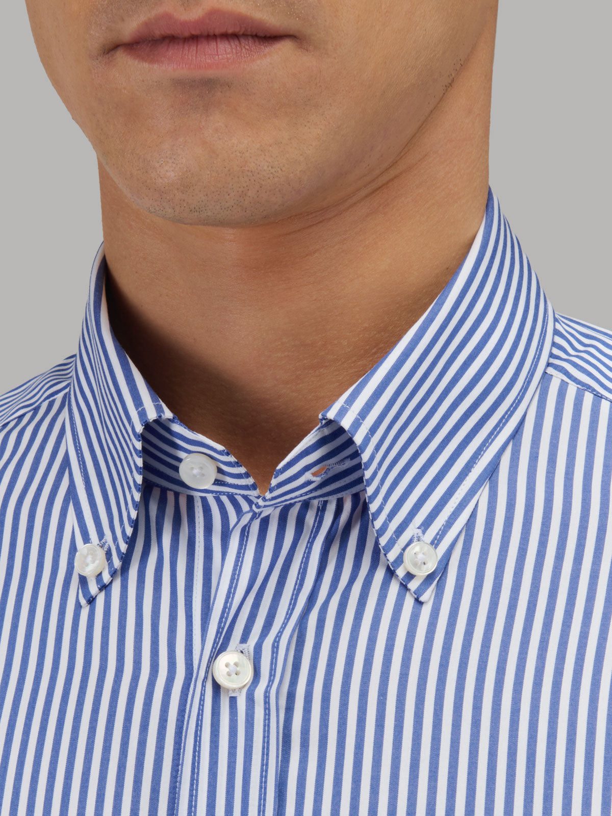 Camisa Cuello Cuello Abotonado Rayas Popelina Azul