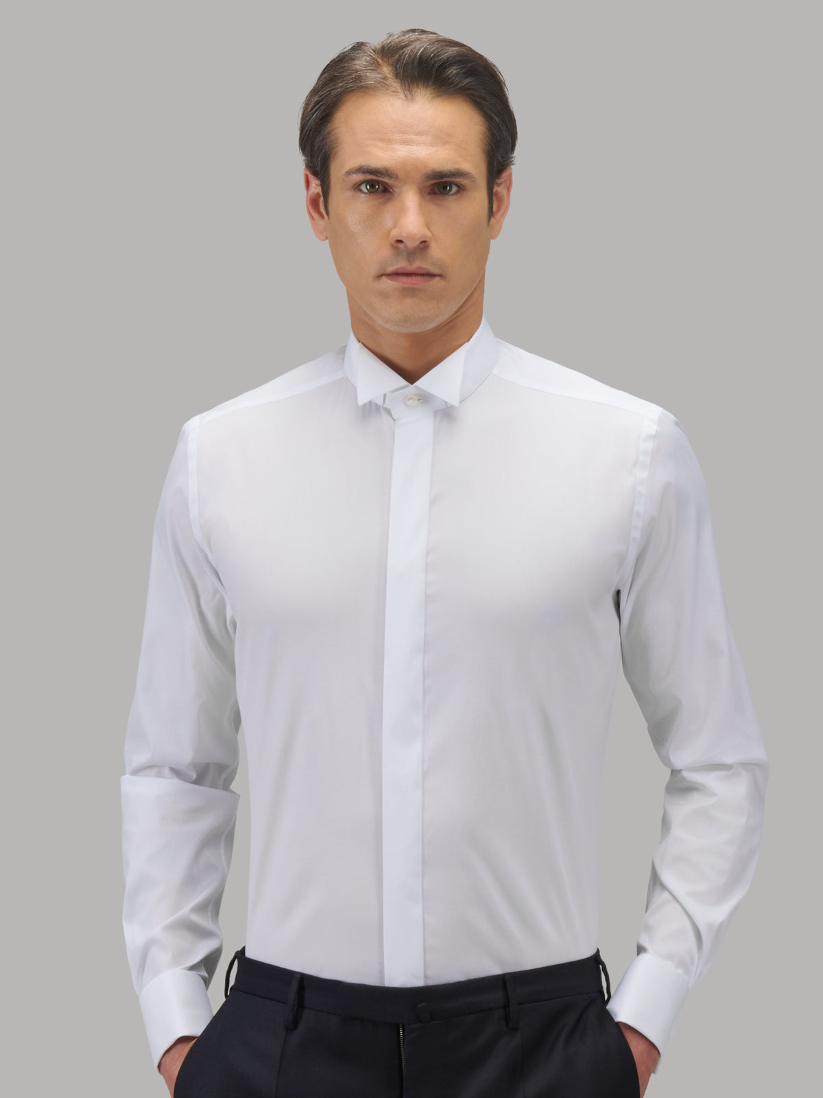 Camisa Cuello Diplomático Liso Popelina Blanco