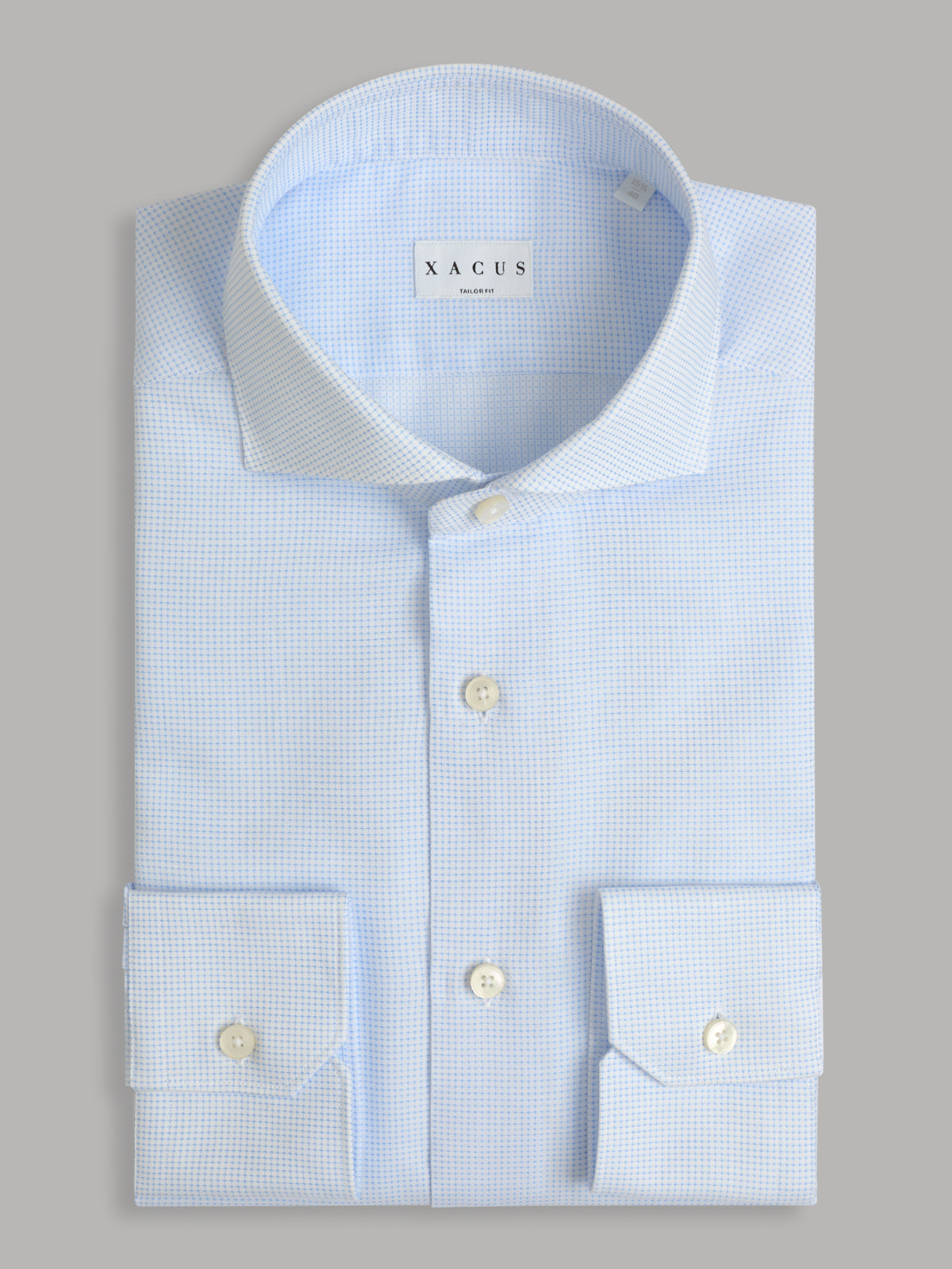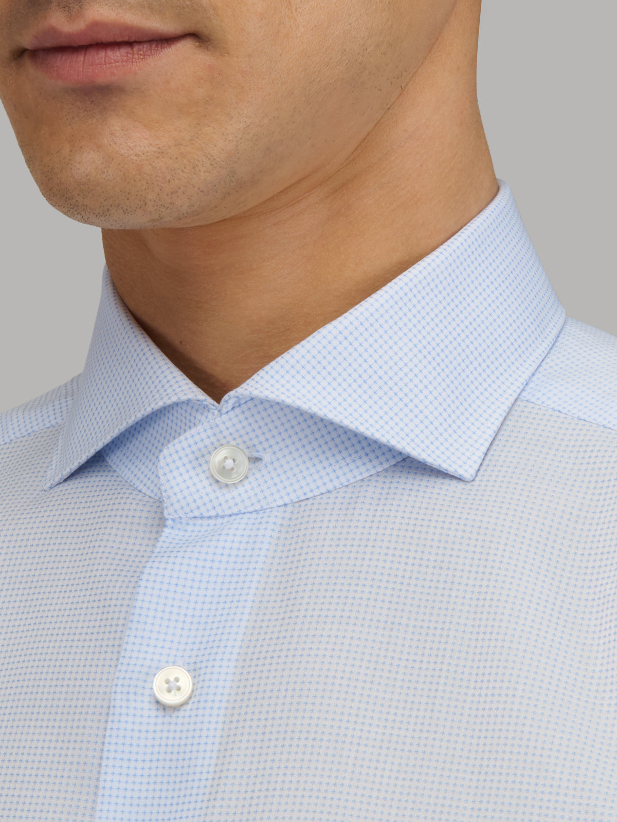 Camisa Cuello Francés Estampado Texturizado Celeste