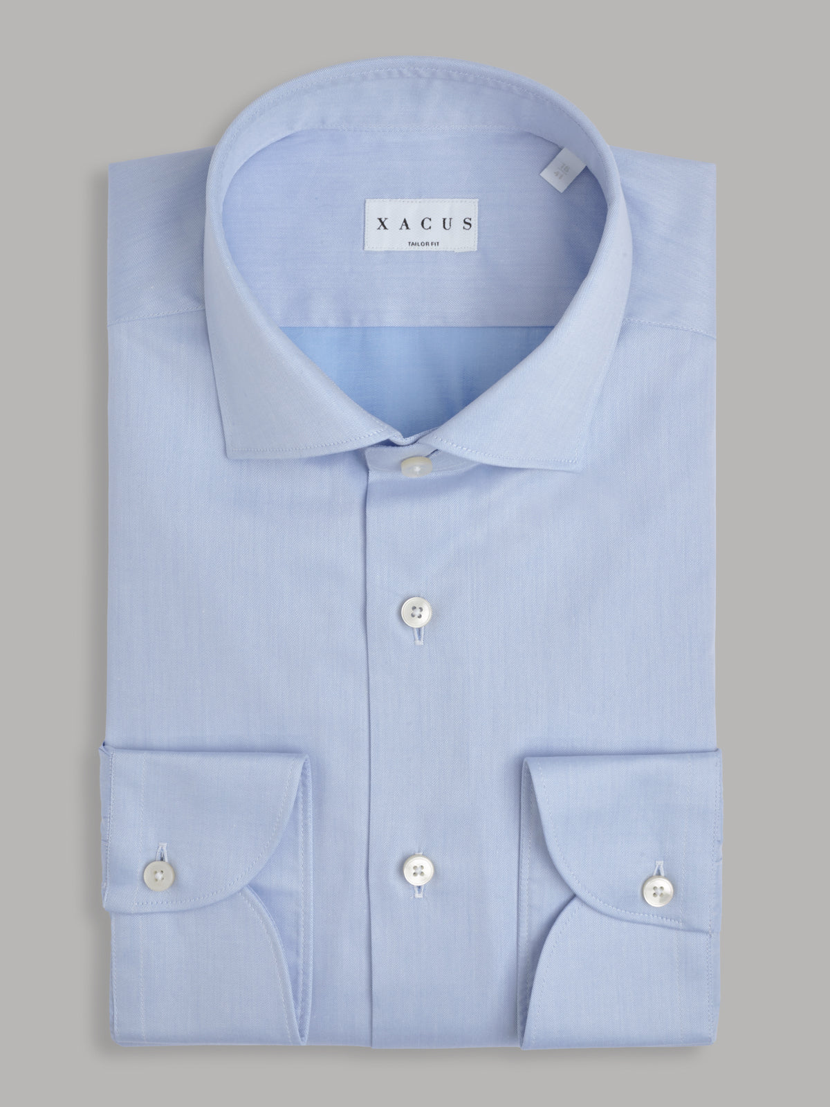 Camisa Cuello Francés Pequeño Liso Sarga Celeste Oscuro
