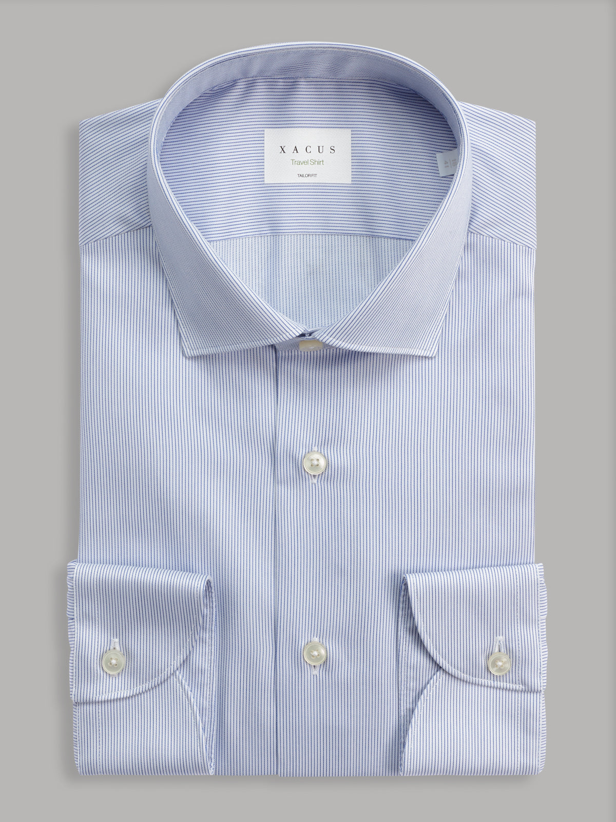 Camisa Cuello Francés Pequeño Rayas Sarga Azul