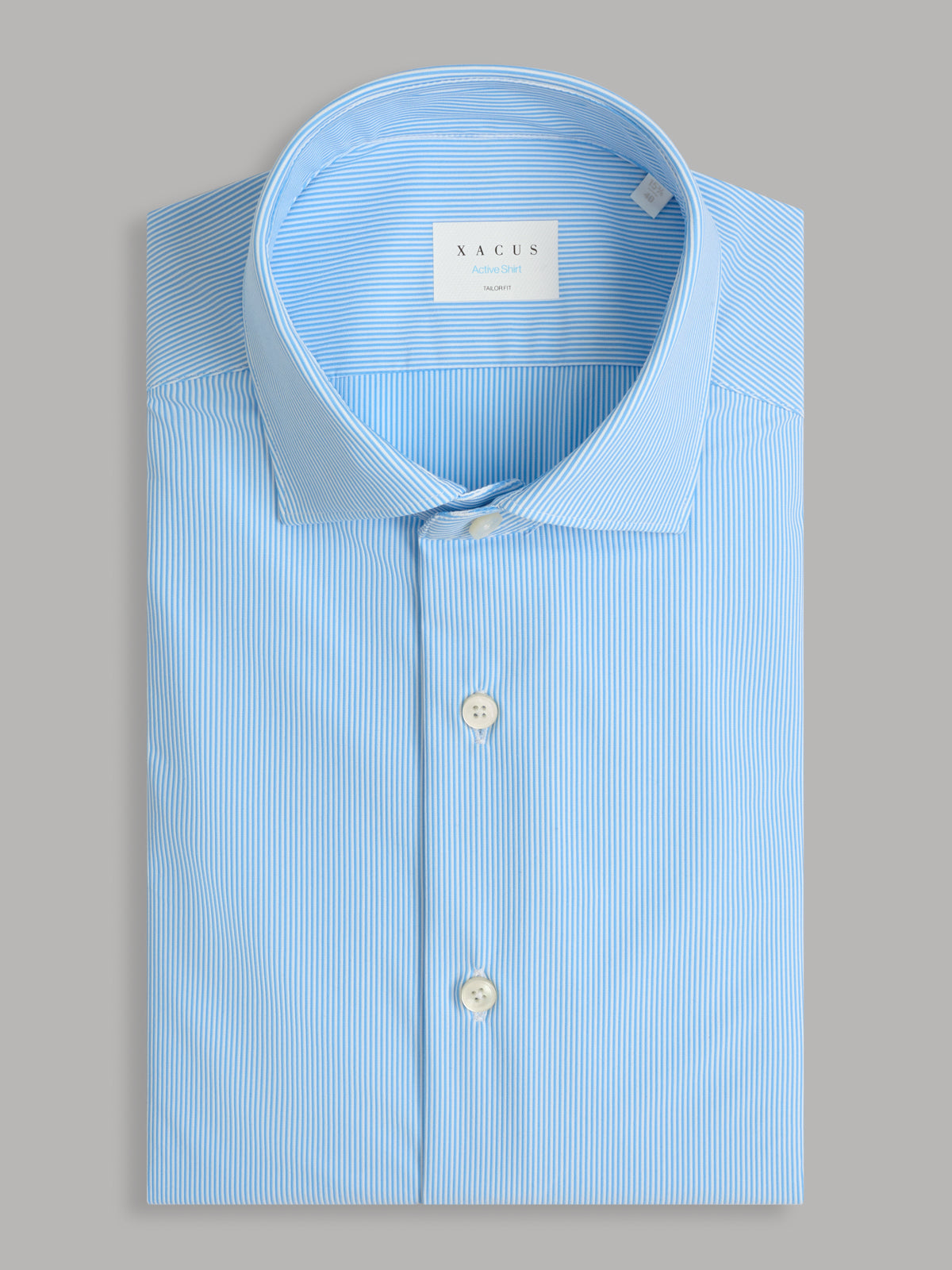 Para un estilo de vida dinámico y en constante movimiento, nace una camisa creada con una exclusiva tecnología japonesa. Compuesta por un hilado de poliamidas y elastanos, Active-shirt es una prenda altamente transpirable, 3D stretch, que se seca rápidamente y muy cómoda en cualquier situación de movimiento. La elegancia de una camisa formal y siempre perfecta, sin renunciar a la máxima practicidad.
