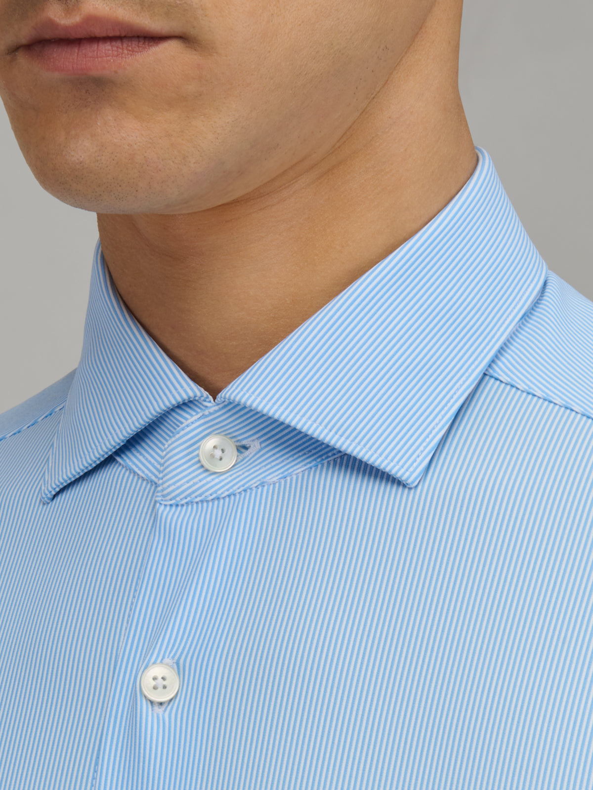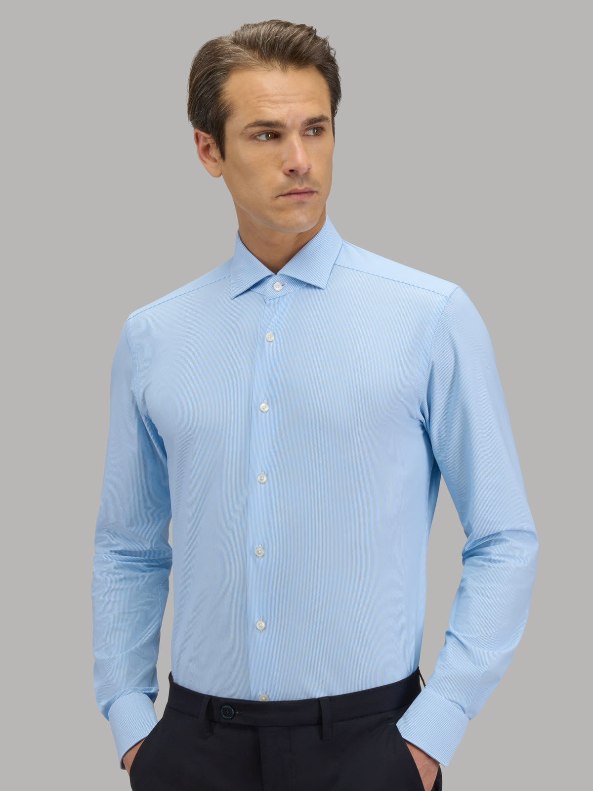 Camisa Cuello Francés Pequeño Rayas Sarga Celeste