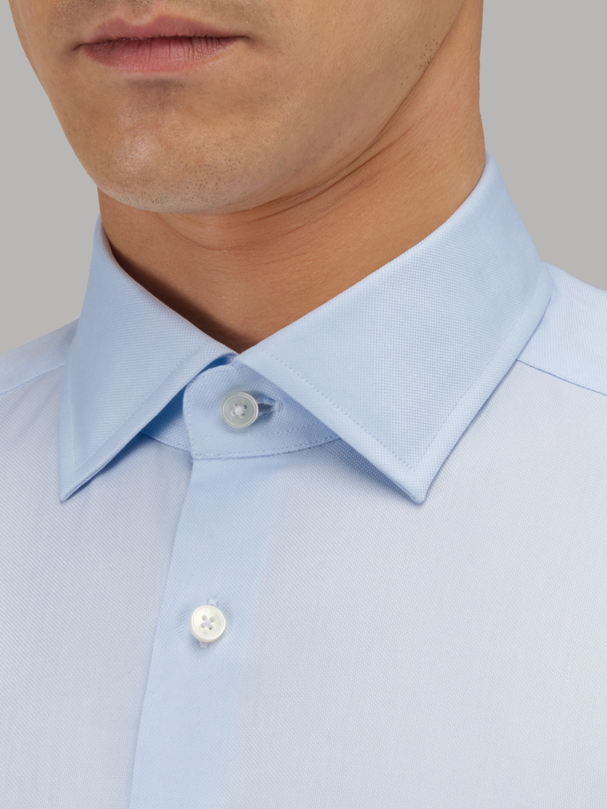 Camisa Cuello Italiano Liso Oxford Celeste Claro