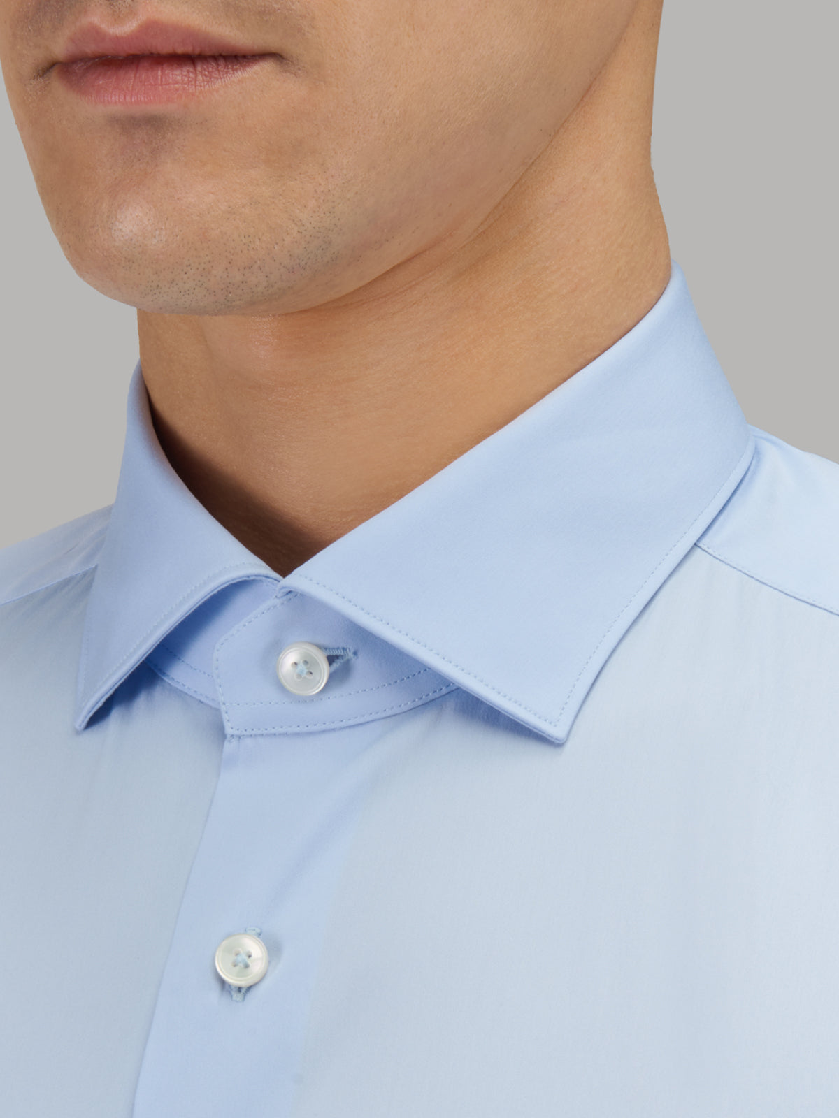 Chemise Col Français Petit Unie Popeline Bleu Ciel