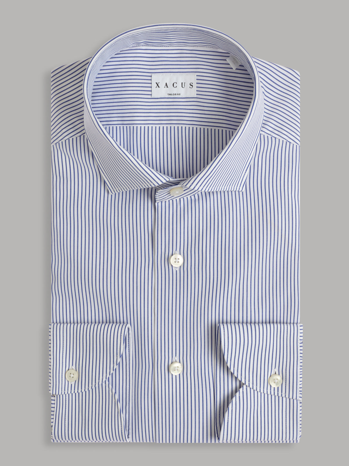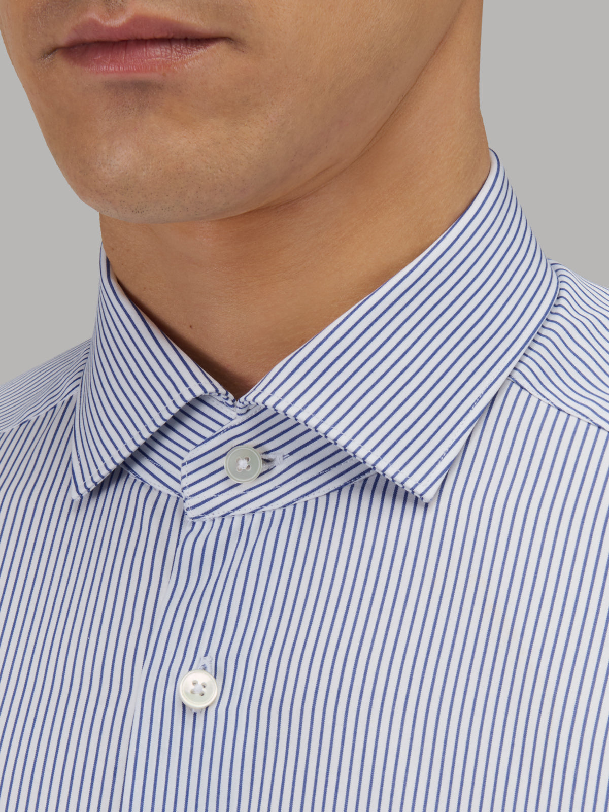 Camicia Collo Francese Piccolo Righe Popeline Blu