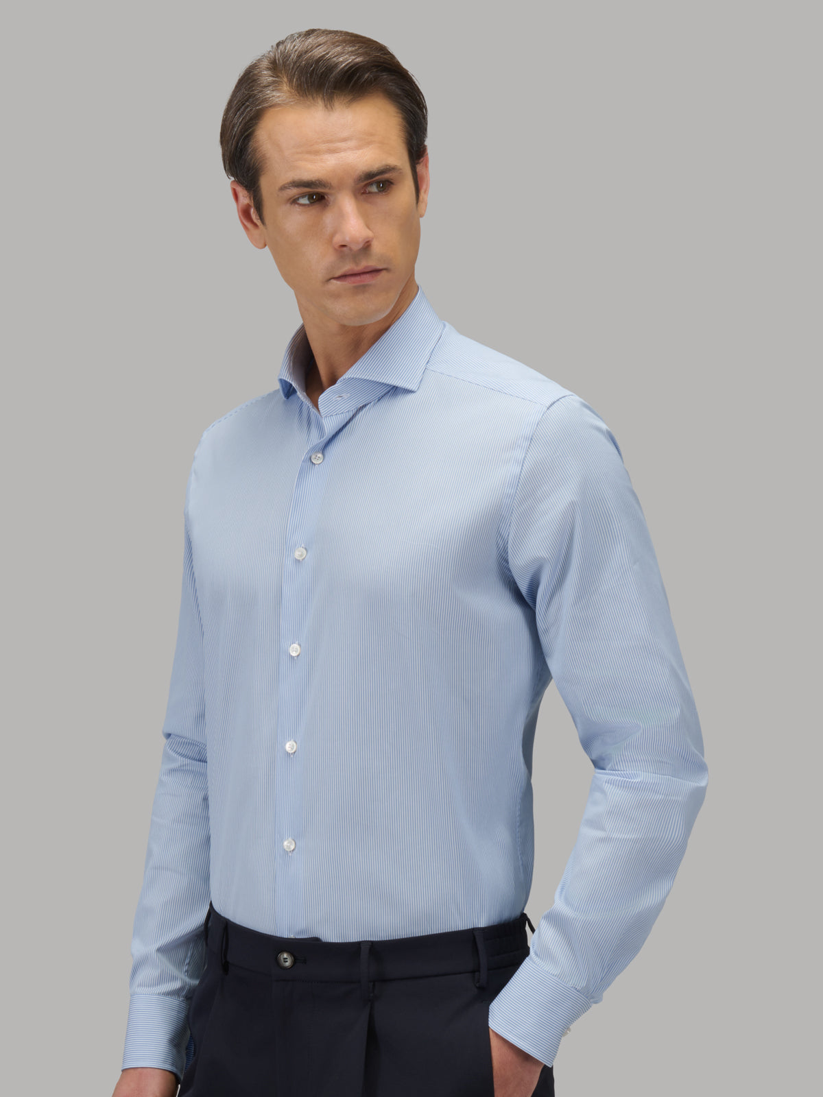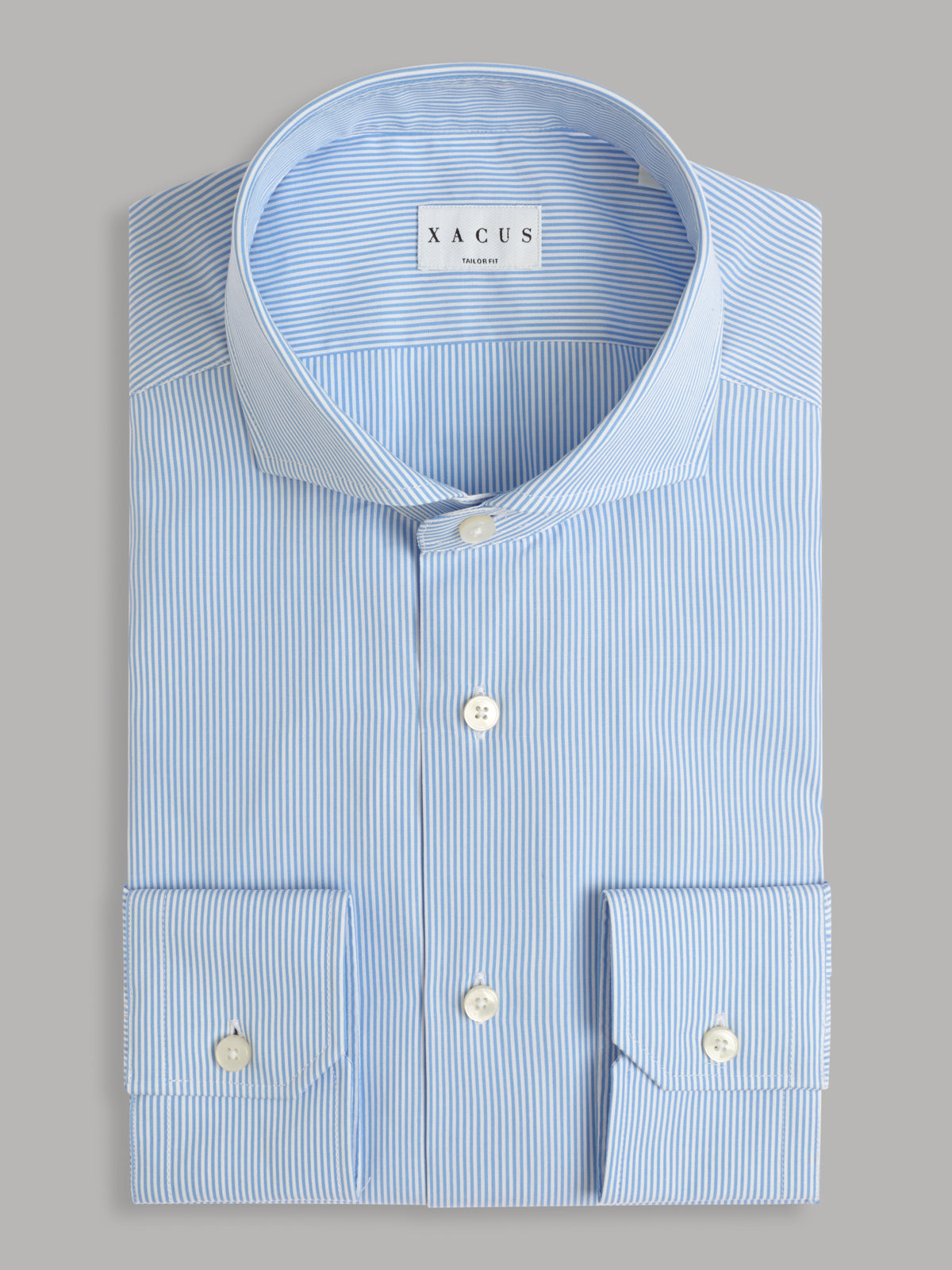 Camicia Collo Francese Righe Popeline Celeste Chiaro